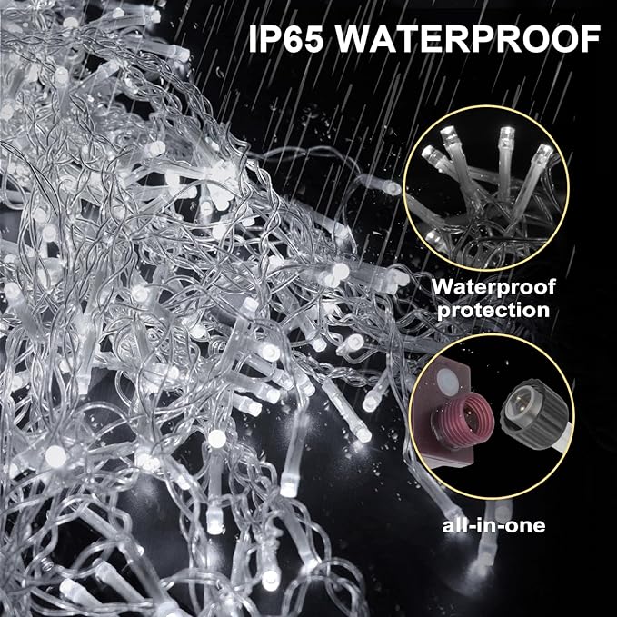 - 【UL Certification & IP65 Waterproof】Outdoor Icicle Lights are made of high quality LEDs and light strings. It has UL approved adapter and 29V low voltage, energy saving and safe to use, even for long time working, it will not overheat. In addition, it has IP65 waterproof rating, so it can withstand rain and snow for a long time. However, please note that the plug is not waterproof.