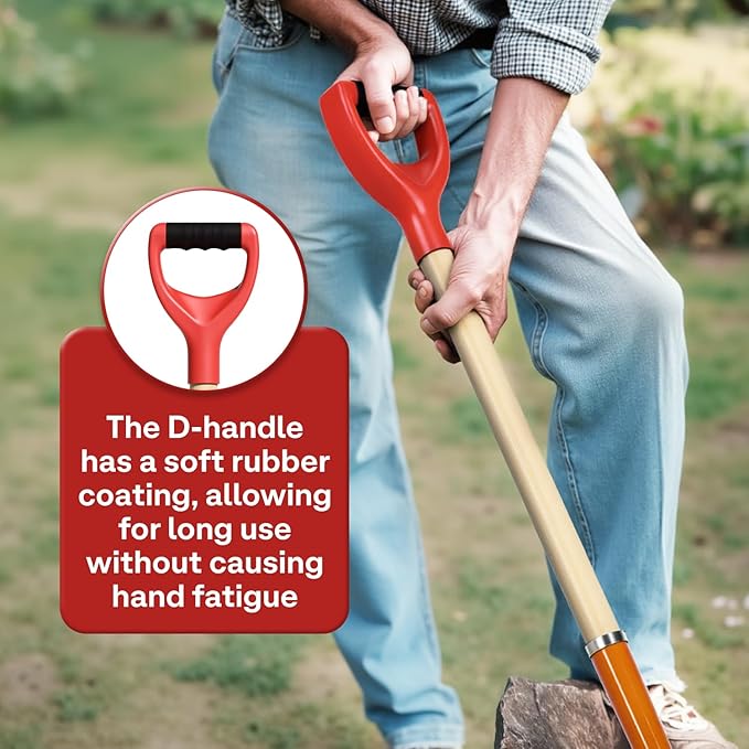 - ERGONOMIC HANDLE FOR LONG USE: The spading fork features a sturdy wood handle with a soft rubber D-handle, minimizing hand strain during long use; Our pitchfork is designed for comfort and control in any garden task