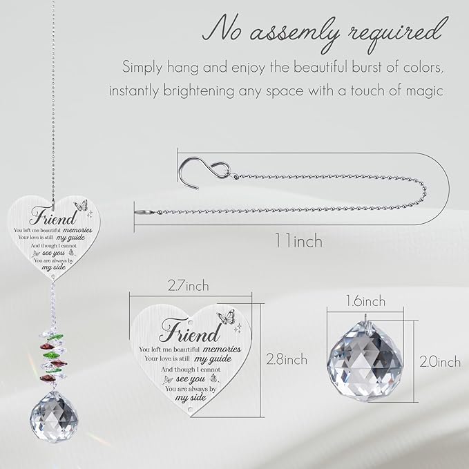 Memorial Crystal Suncatcher,Loss of Best Friend Sympathy Gifts,Friend Memorial Gifts,Hanging Crystals Ornament for Window Rainbow Maker Prisms Home Decor Gift