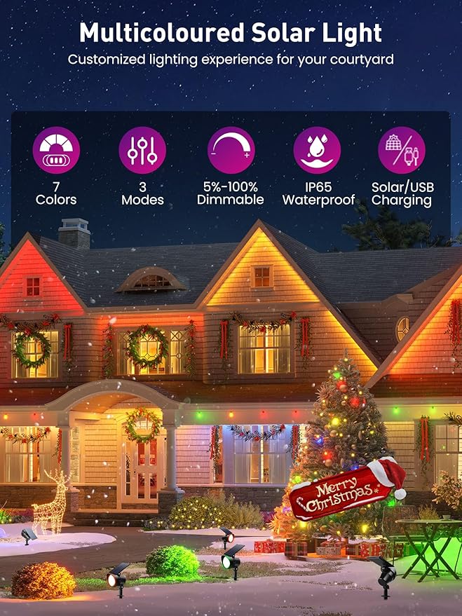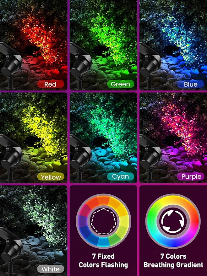 - đ ăMultiple Colored Solar Landscape Lights OutdoorăALUSSO LIGHTING color changing outdoor solar spot lights offer 7 colors and 3 unique lighting modes, including fixed, flashing and breathing gradients, for a customized lighting experience in your courtyard.