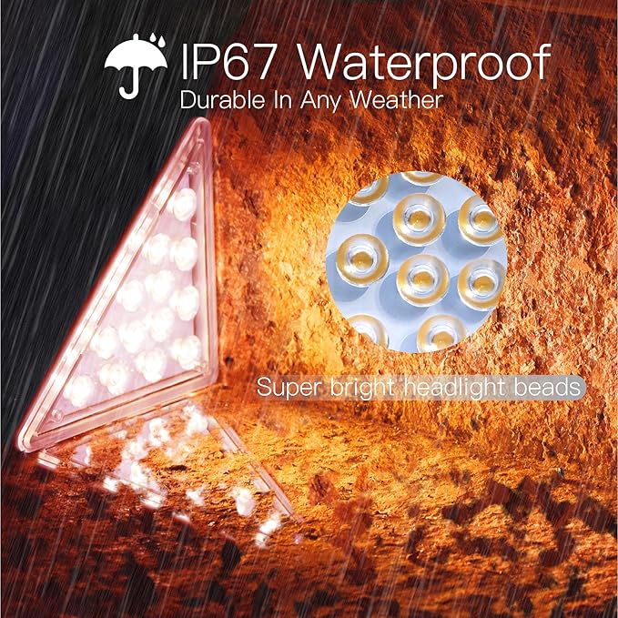 - 【Brighter &IP67 Waterproof】13 LEDs/140Lumens/ 1200mAh battery. Solar stair lights outdoor offer 6-12H illumination for your garden and yard stair after a full 4.5-hour charge, without external electricity. Solar stair lights are designed with reflective optical lens which can reduce the lighting loss and increase the brightness of the lights.Our outdoor solar step lights are made of high-quality ABS plastic and have an IP67 waterproof rating, making them suitable for outdoor use in various weather conditions.