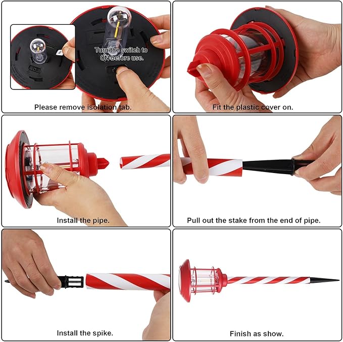 - SOLAR XMAS PATHWAY LIGHTS: Connect the light, pole and stake(inside the pole), insert the stakes into the soft soil or ground where there has direct sunlight. Solar LED pathway lights, add a 360 degree viewing angle illuminate charming to your outdoors, produces a very calm and impressive atmosphere. Size with Stake- 4.9 x 4.9 x 19.1 inches