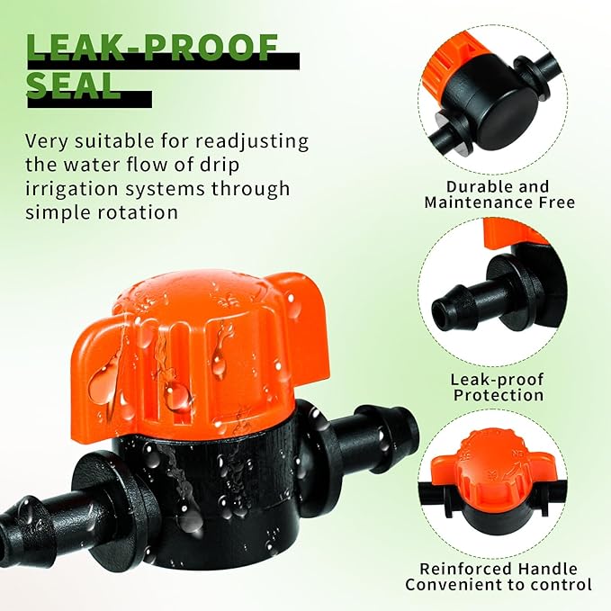 - [High-quality]: Our drip irrigation shut off valve is made of high-quality plastic, which is sturdy, durable, waterproof, and corrosion-resistant, with a long service life.Features sharp-barb design for secure and without leaks.