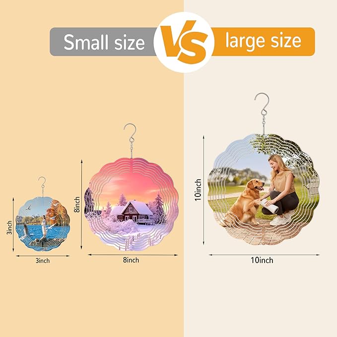 - BRIGHT AND VIVID COLOR: The double-sided of our wind spinner sublimation blanks ornaments is treated with high-quality sublimation coating, ensuring the vivid and crisp sublimation results for every project. Could be a nice Halloween decorations. Allowing you to incorporate your favorite designs or photos, unleashing your imagination to create a stunning personalized product. This windspinner sublimation blanks is suitable for heat transfer.