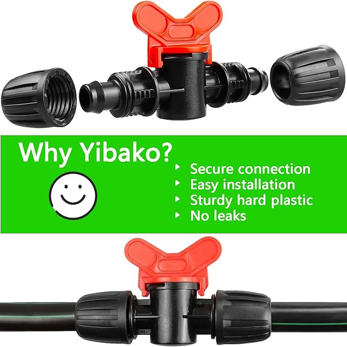 - Value Package&Easy to Install:This 1/2-inch drip irrigation parts set features 13 pieces of barbed locking shut-off valves,designed to meet various irrigation needs and ensure long-term reliability.No glue, tools, or fixtures are necessary—simply push the tube firmly onto the barb and tighten the nut.The twist-lock mechanism enhances tube security,preventing leaks.1/2-inch irrigation tubing kits are suitable for most 1/2-inch inner diameter,0.6-0.63-inch (16 mm) outer diameter irrigation pipes.