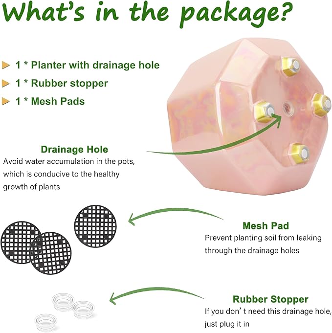 - Planters for indoor plants - Comes with a drainage hole, mesh pad and rubber stopper for easy plant care