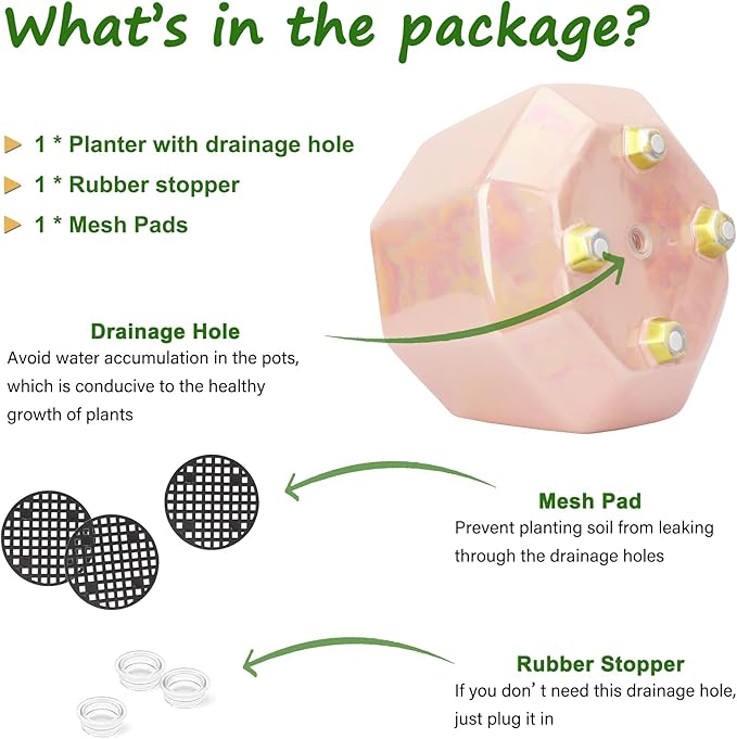 - Planters for indoor plants - Comes with a drainage hole, mesh pad and rubber stopper for easy plant care
