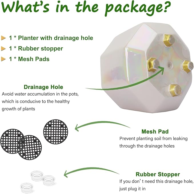 - Planters for indoor plants - Comes with a drainage hole, mesh pad and rubber stopper for easy plant care