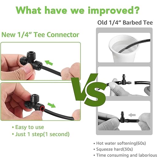 50 Foot (15 m) Drip Hose,1/4" Blank Distribution Hose Drip Hose with 6 Packs of 1/4 "Drip Tee Connectors,Suitable for Quick Connector Irrigation Systems,Small Garden Irrigation Systems