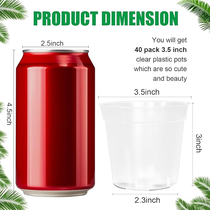 - New PP Plastic: Our clear pots for plants are make of new PP plastic, which are more durable and sturdy. And you can get 40 pack 3.5 inches clear nursery pots. Height is 3 inch, bottom diameter is 2.3 inch. These seed starter pots provide the good environment to promote the healthy growth of seedlings.