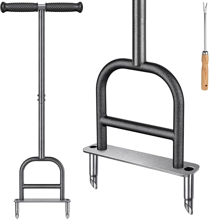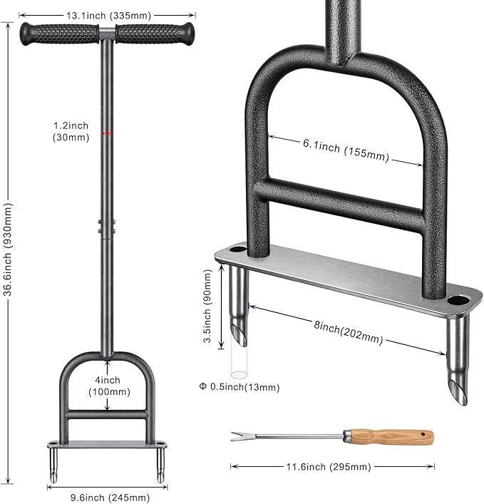 - 2 Stainless Steel Coring Plugs: Our 2 core aerator plugs uses stainless steel material that will not rust or bend out of shape. Additionally, our rod is made from high-quality solid steel with a black powder coating on the surface to ensure long-term use of the tool.