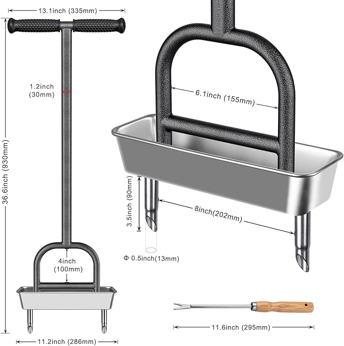 - One-Piece Pole Design: No complex installation is required. Simply attach the base core plugs and storage tray to the rod, and it’s ready to use. Each plug is 3.5 inches long and 0.5 inches in diameter, providing the optimal size and shape for your lawn cores. This simple and efficient lawn core aerator saves you time and effort.