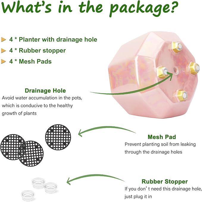 - Planters for indoor plants - Comes with a drainage hole, mesh pad and rubber stopper for easy plant care