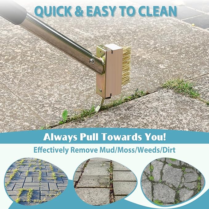 - 🌿【Practical Crevice Weeding Tool】This manual crevice weeding brush is an effective cleaning tool for patios, decks, and garden paths, combining both weeding and sweeping functions. This 2-in-1 design is suitable for cleaning crevices at all kinds of tricky angles, perfect for small cleaning needs, easy to operate and easy to use, helping you to improve the cleaning efficiency of your garden and reduce the nuisance caused by weeds.