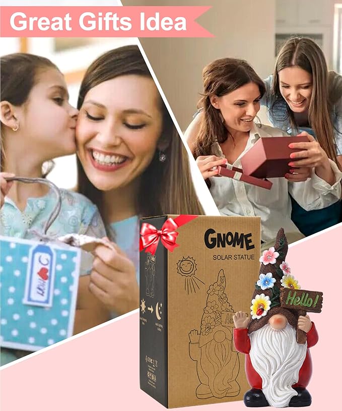 Gnome Solar Statues for Garden Decor - Outdoor Decorations Art Figurine for Patio Balcony Yard Lawn