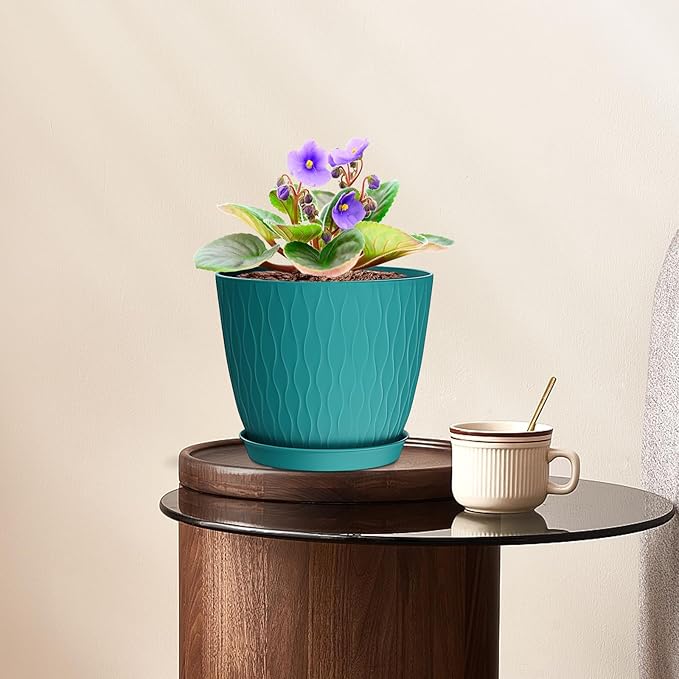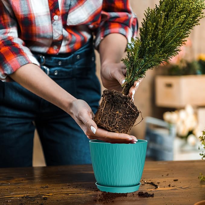 - [Sturdy PP material with Matte Finishing Exterior] There 6 inch plastic plant pots are made of 0.12inch thickness plastic. Be safety placed on the windowsill, home and office. Plastic pots are ligthweight, they tend to retain moisture, so you will water less frequently. And Easy to wash and reuse