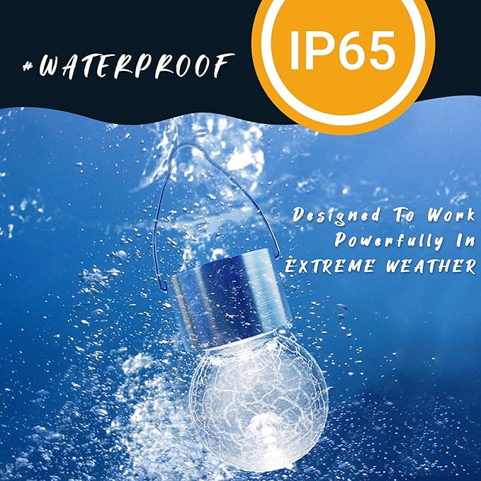 - 【Premium Material】Featuring a shimmering crackle glass globe, a sturdy stainless-steel hook and newest upgrade solar panel, adding a superior light effect to your garden