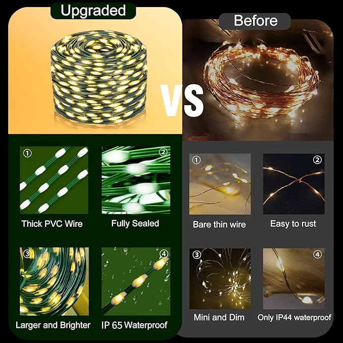 - Waterproof: With an IP65 rating, these solar christmas lights are designed to withstand all weather conditions, including heavy rain and snow, making them suitable for indoor and outdoor use