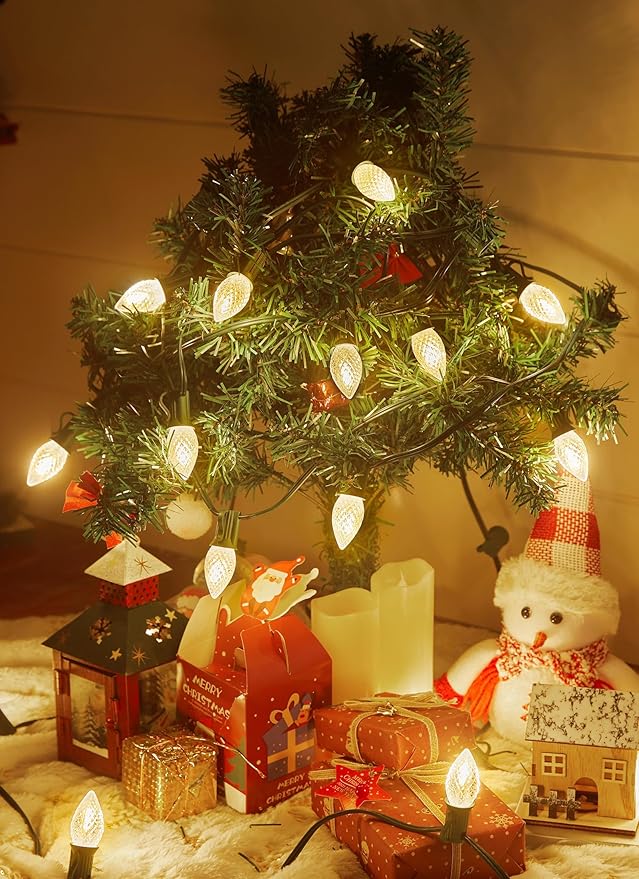 - Easy to Install: Warm White C7 LED lights with small hooks are easy to install and can be easily hung on trees, branches and roofs. holiday string lights are perfect for porches, gardens, patios, walls, yards, Christmas tree, window, parties, and all occasions at Christmas