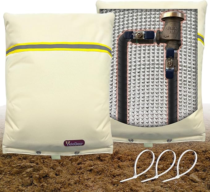 Backflow Preventer Insulation Cover, 16" W x 20" H YeloDeer Reusable Waterproof Sprinkler Valve Cover with Aluminum Foil, Outdoor Well Pump Cover Insulated for Winter Freeze Protection.
