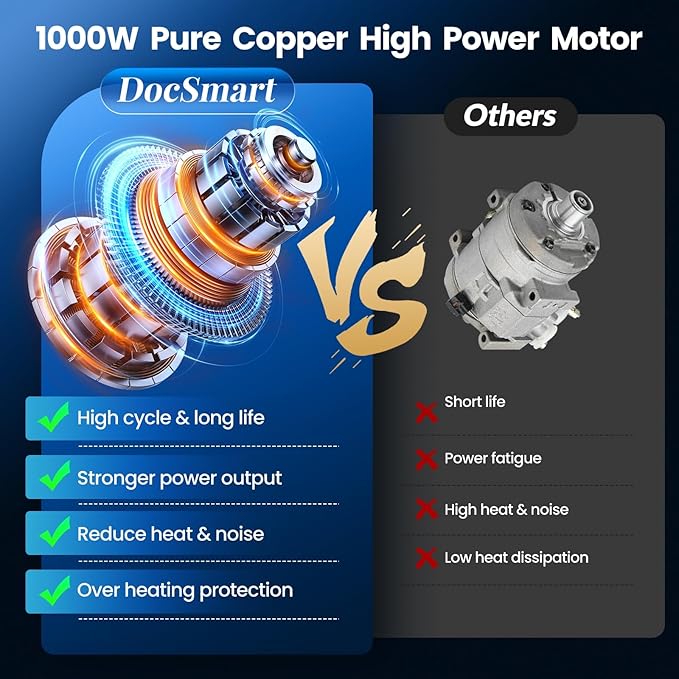 - 2024 Upgraded Motor: A 1000W pure copper motor drives the mini chainsaw at 30ft/s and delivers faster and more efficient cuts, cutting 8-inch logs in 8s with no effort(actual time may vary depending on the size and hardness of the wood). Thanks to manganese steel & deep quenching process, it ensures smooth cutting