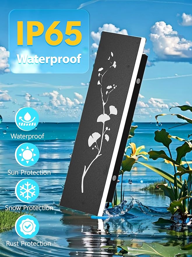Modern Outdoor Wall Lights 11.8inch LED Long Wall Sconce 3000K Ginkgo Hollow Design Wall Mount Porch Lights 12W Exterior Lighting Fixtures for Patio Balcony Terrace Garden