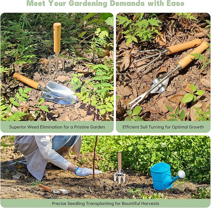 - Heavy-duty gardening tool kit:Is made of high-strength stainless steel, which is sturdy and durable and has extremely strong rust and corrosion resistance. Besides, during use, the tools hardly deform or break and can efficiently deal with any challenges in gardening work.