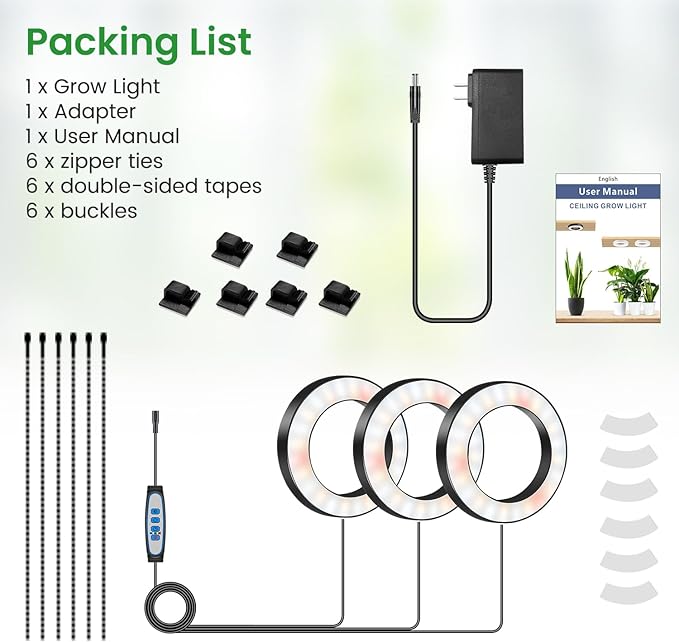 - Space saving and Wide Irradiation: With 12V 3A adapter, 6.3 inch diameter halo grow light provides ample coverage for your indoor garden. this grow light also stylish decoration for any home space. Suitable for all types of locations such as hangings, floor planters and more.
