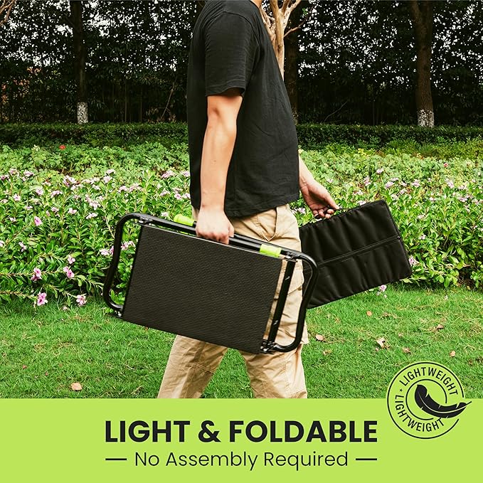 - 【LIGHTWEIGHT AND FOLDABLE】The foldable and portable feature of our kneeling pad for gardening makes it unique in the market as it can be easily and compactly fold up and store away or move it anywhere you want for gardening needs. Easy to carry and store away. No assembly is required, opens and closes in a quick snap.