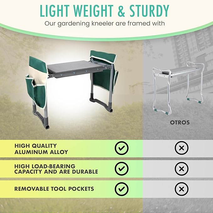 - 💪 Durability and Lightness in One Product: Built with a sturdy steel frame, this kneeler supports a significant weight without sacrificing its lightness. Designed to last, it will provide support and comfort in all your gardening tasks. If any issue arises, we’re here to help!