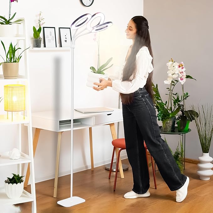 - ✔️【FULLY ADJUSTABLE】The standing lamp is fully adjustable, quick and easy, featuring 3 heads of light which can cover multiple plants simultaneously. A perfect grow light for your plants which can be used as a 360° angle light. The tripod height and angle can be adjusted to meet the needs of your plants according to their size and position. Quick installation within 2 minutes, simply screw up the tripod, gooseneck and the plant lights, adjust the height and angle of tripod, and done.