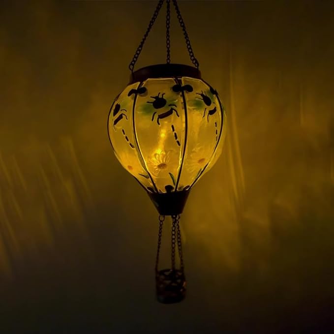 - Included in The Package: The product package contains 2 hot air balloon solar lanterns and 2 sheep hooks; Solar hanging light 5.5 "wide *18" high, sheep hook 31.5 "high