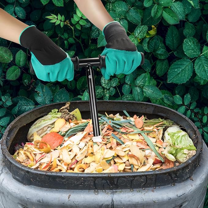 - Enhance Composting Efficiency: This compost tool helps aerate your bin by mixing grass clippings, leaves, and vegetable scraps. By adding air, it accelerates the composting process, delivering nutrient-rich compost more quickly.