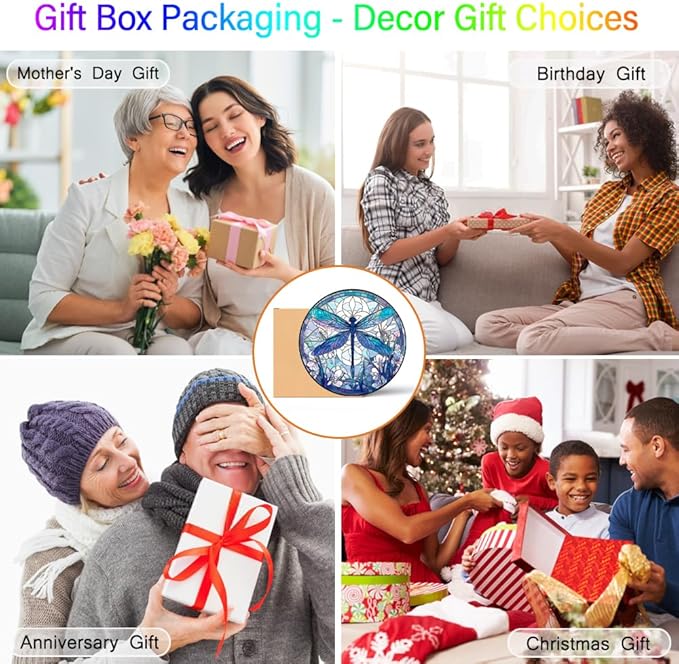 - 【Exquisite Festival Gift Memorial】The handmade suncatcher for hanging stained glass is a lovely gift for your mother, daughter, friends, family, lover or nature enthusiast, can be decor glass doors, kitchen windows, upstairs windows, round top windows, front windows, bedroom windows, kitchen doors, our dragonfly room decor would be a great embellishment to your home. Suitable for Mother's Day gifts, Christmas gifts, Thanksgiving Day gifts, Birthday gifts, Easter gifts.
