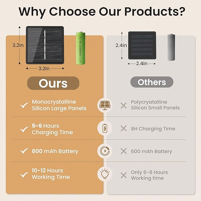 - IP65 Waterproof: Having these bright solar powered outdoor lights is a lively decor light for your house that can withstand different weather conditions like rain, snow, wind, and storm. Great for outdoor decoration, creating a warm ambiance for backyard, garden, gazebo, porch and patio