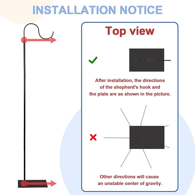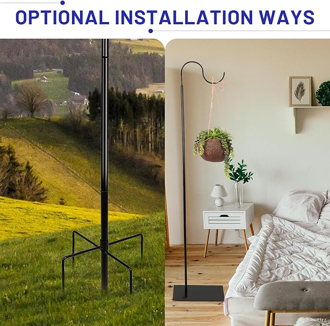 - Two Installation Methods: This hummingbird feeder stand includes a flat base and a ground plug, which can be used both indoors and outdoors. Even on uneven dirt ground, you can use the ground plug to fix it.