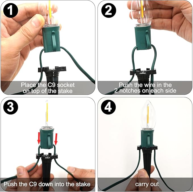 - 【IP44 Waterproof】: C9 Christmas Pathway Stake Lights are IP44 waterproof, ensuring they withstand all weather conditions from snow to rain. UL Listed for safety, Christmas lights provide reliable performance season after season, making them the perfect choice for outdoor patio decorations that last.