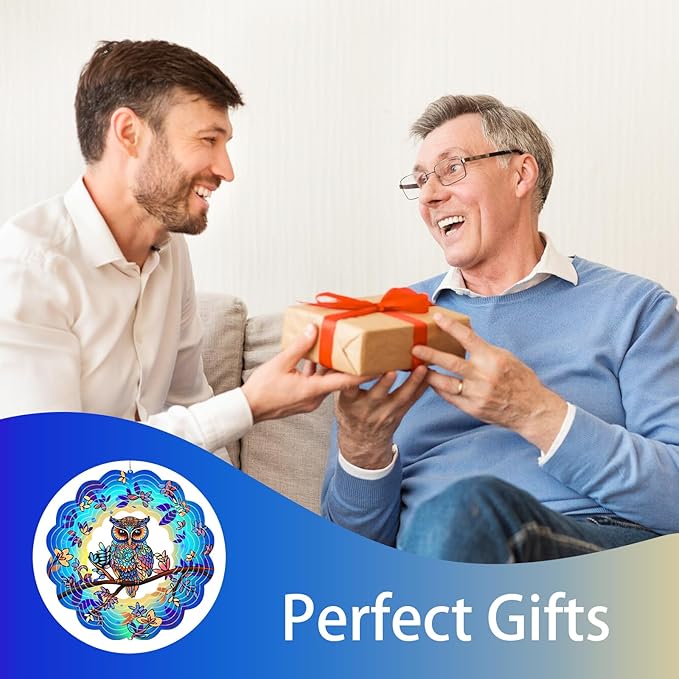 Owl Metal Wind Spinners Owl Gifts for Mom Women Grandma,12inch Hanging Wind Spinner for Outdoor&Indoor Decor Wind Kinetic Christmas Mother Ornament Gifts for Yard Garden Decoration