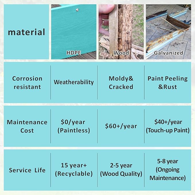 - ๐๐๐๐๐ญ๐ฒ๏ผMade from HDPE, the plant bed does not use any water-based or oil-based coatings,ensuring that your fruits, vegetables, plants, and herbs grow safely