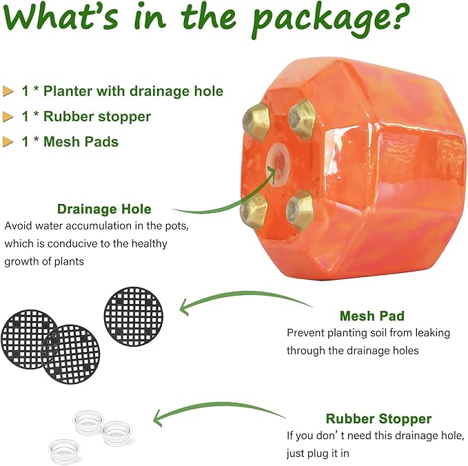 - Planters for indoor plants - Comes with a drainage hole, mesh pad and rubber stopper for easy plant care