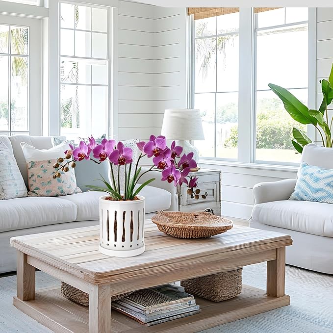- Superior Airflow Design for Orchid Pots: Our 6-inch ceramic orchid pot is specially designed with extra-large slotted holes, ensuring significantly improved air circulation compared to other orchid pots with holes. This enhanced ventilation promotes healthier root systems, which is essential for orchid growth and vitality