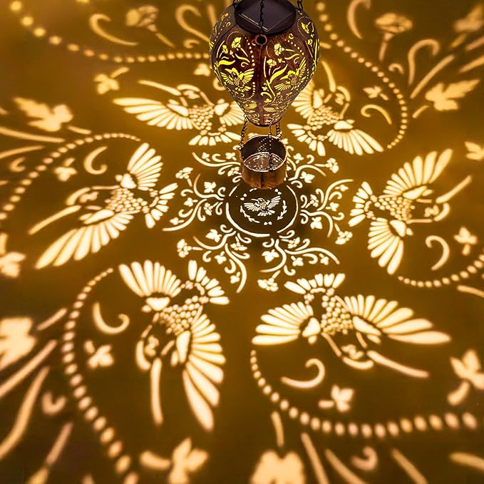 - 【Hummingbird Pattern】The Profinella hot air balloon solar lantern features a unique metal hummingbird cut-out pattern design. During the day, it serves as an art ornament to enhance your garden, yard or outdoor space; at night, it transforms into a magical light show, projecting clear hummingbird patterns onto the ground or walls, adding endless charm to your outdoor decor.