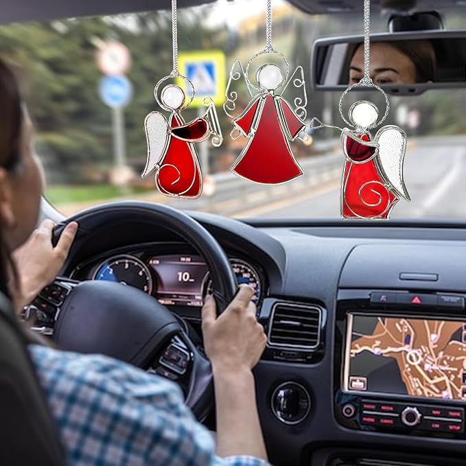 - đăEasy to Hangă- Each stained glass Angel suncatcher ornament comes with a metal ring, you can use a string to hang it anywhere you want to decorate. It's a hassle-free way to add a beautiful touch to any space.Wherever the place is - Christmas Tree, glass doors, kitchen window, upstairs windows, circle-head window, front window, bedroom window, kitchen door or as welcome signs on hanger stands.