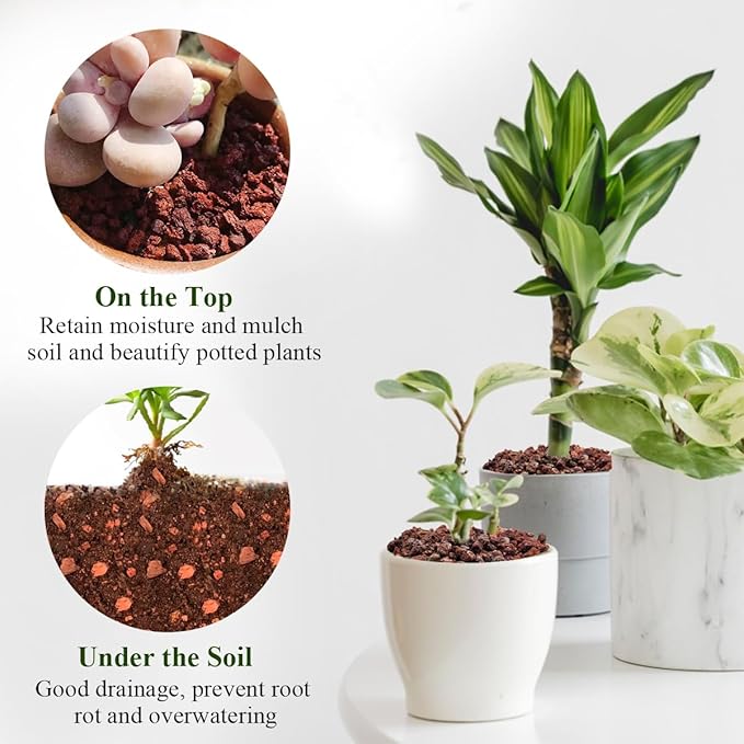 - 【Succulents Soil Potting Mix】Adding lava rocks mulch to maintain plants like orchids, succulents, cactus, and bonsai trees ensures proper drainage while maintaining moisture. It is not only aesthetically pleasing but also prevents weeds from growing