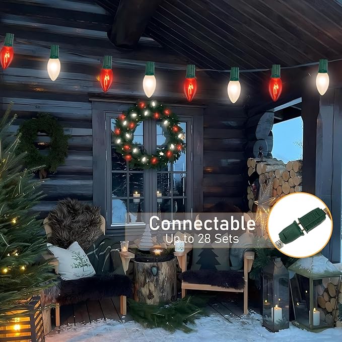 - Seamless Connectivity: Transform your holiday lighting with c9 red and white christmas lights featuring end-to-end connectivity. The snug E17/C9 candelabra socket base allows for secure connections, letting you link multiple strands together effortlessly. Perfect for creating expansive light displays, you can easily cover large areas and make your festive season shine even brighter.