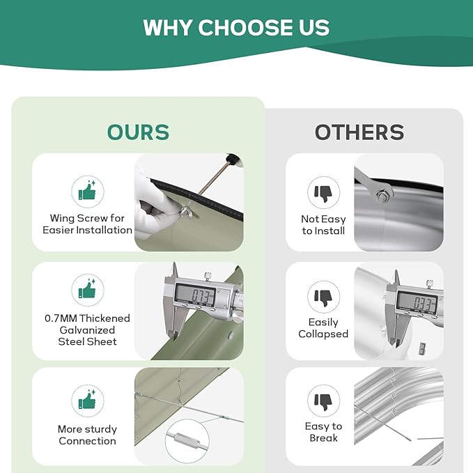 - 【 Easy Assembly 】Our metal raised garden bed is simple and easy to install. According to the detailed instructions and installation tools we provide, you can easily assemble your garden box and start planting with just a few simple steps and little time.