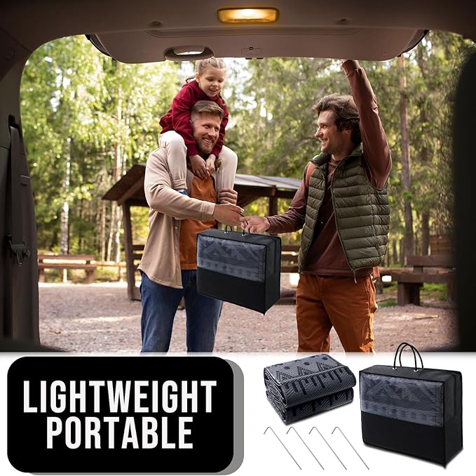 - LIGHTWEIGHT & PORTABLE: The lightweight foldable construction makes this patio rug ultra-portable; take them anywhere from campouts to picnics without adding extra bulk; with a matching carry bag for easy transport and storage