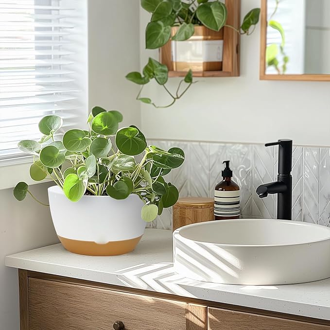 - 【Wide & Shallow Planting Space】The indoor and outdoor plant pots are 8 inches in size, suitable for almost all small and medium-sized indoor plants and herb spice gardens. Suitable for orchids, cacti, succulents, aloe, basil, flowers, peace lily, snake plant, monstera.