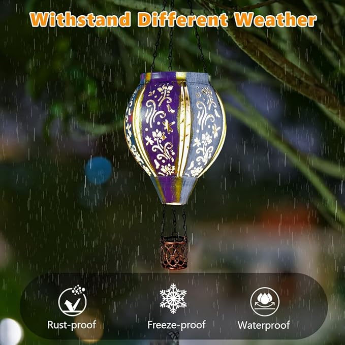 - 【Perfect Gift】Hot air balloon has rich meanings, which represents courage, hopes, dreams, romantic love, our hot air balloon solar lantern make a great Mother's Day, anniversary, holiday, birthday gift.