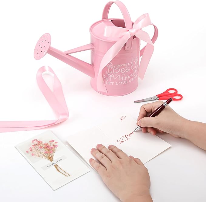 - GARDENING GIFTS FOR MIMI: This lovely gift set is perfect for any mimi who loves gardening! It includes a 1/2 gallon watering can, a pink ribbon, and a greeting card, so you can add your own personal touch. We think the best mimi ever watering can will be the perfect gift for Christmas, Mother's Day, anniversary or birthday.